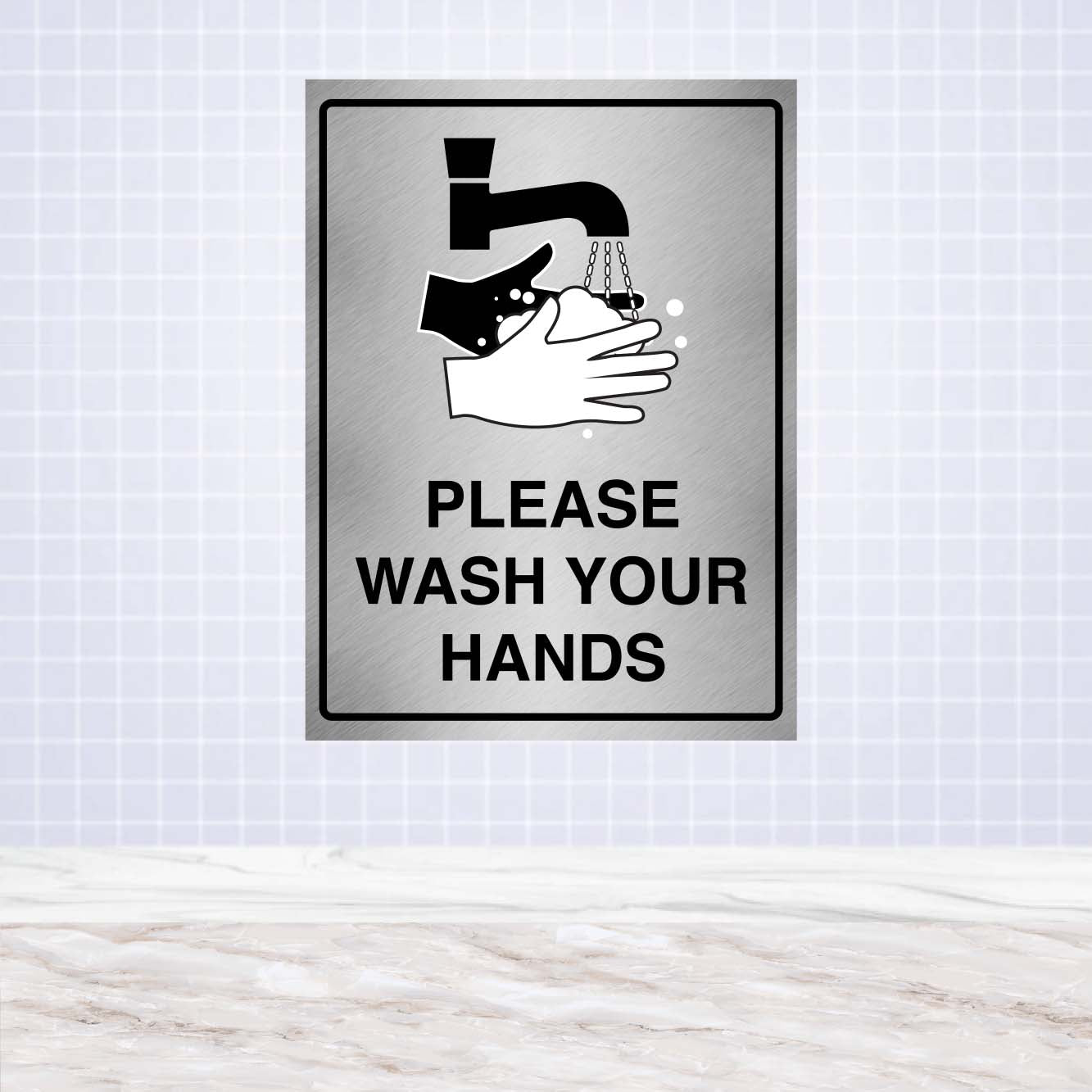 PLEASE WASH YOUR HANDS SIGN is used in bathrooms, kitchens, and other areas with sinks to remind people to wash their hands after using the facilities or before handling food.